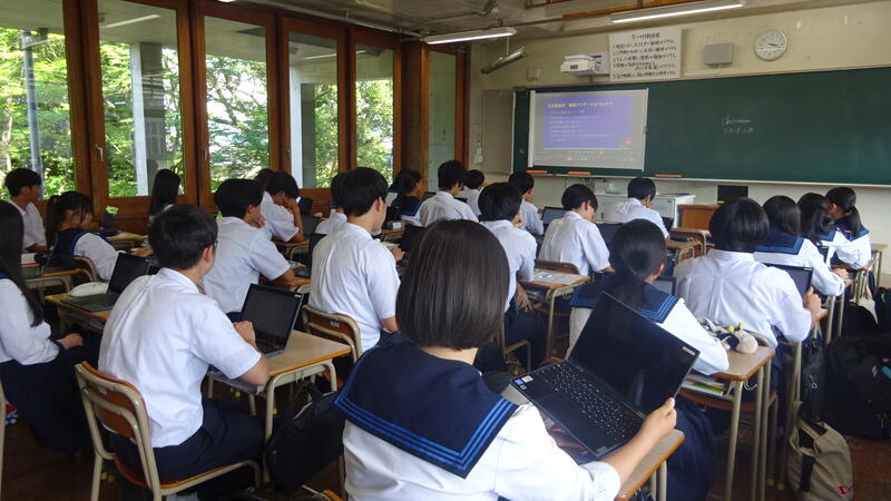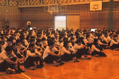生徒たちは、質問をするなど興味深く話を聞いていました。