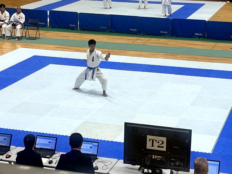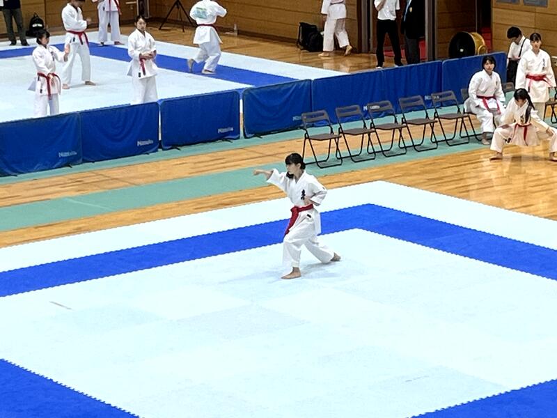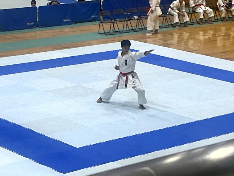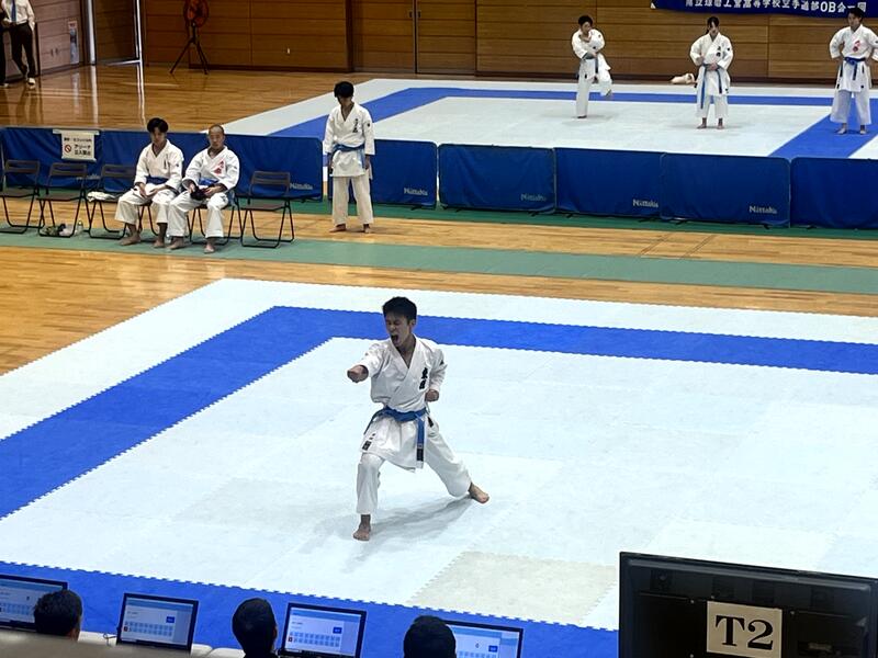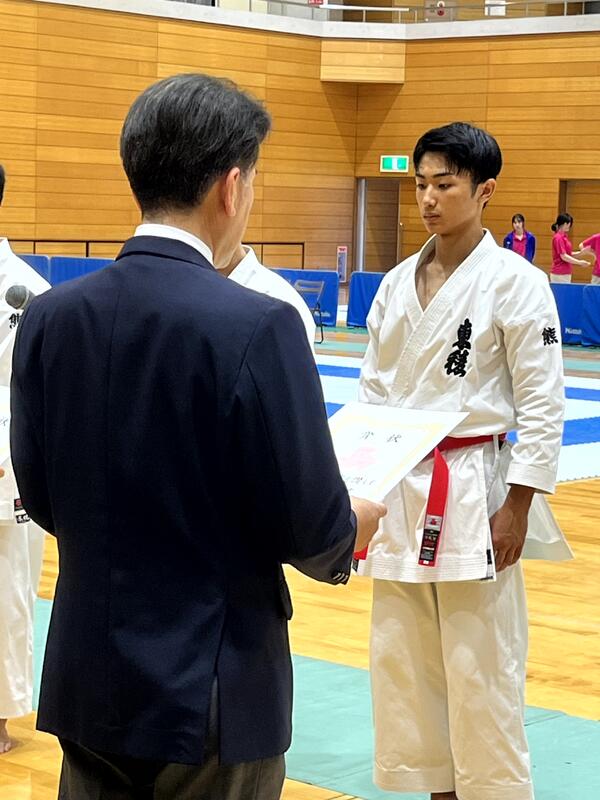 1日目男女個人形(かた)、2日目男女団体組手、3日目男女個人組手が行われ、日頃の努力の成果を発揮しました。個人形では、スイスワヒュ君が優勝し、九州総体、インターハイの出場が決定しました。