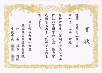 男子ミニサッカー 1位8組 2位4組 3位5組
