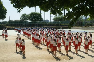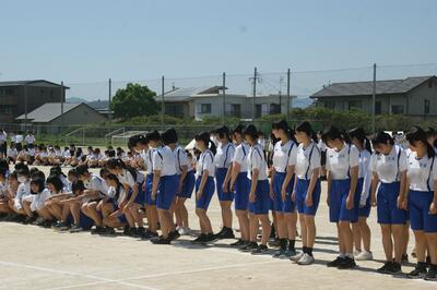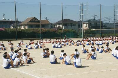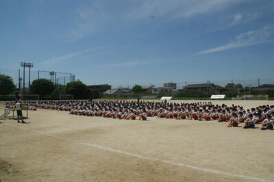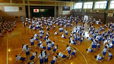 5限目は全学年そろって、隊形と移動の確認を行いました。