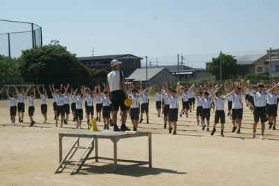 ゴールデンウィーク前最後の練習は天候に恵まれ、久しぶりに三学年揃って屋外で実施することができました。