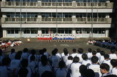 昼休みをはさみ、午後はマスゲームの通し練習を行いました。