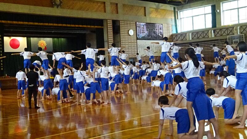5限目後半と6限目は、マスゲームの練習を行いました。