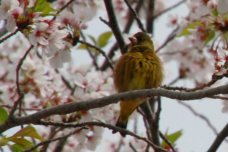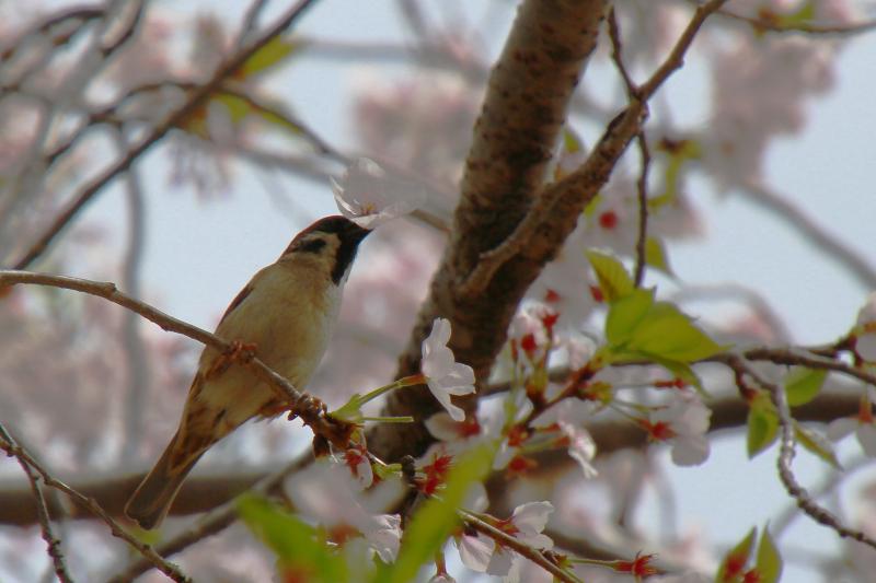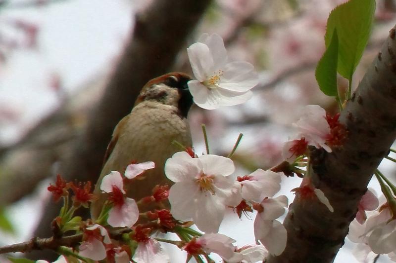 桜の花を摘み、逆さにして、花の蜜・樹液を器用に吸っていました。(1枚目、4枚目、5枚目の写真)