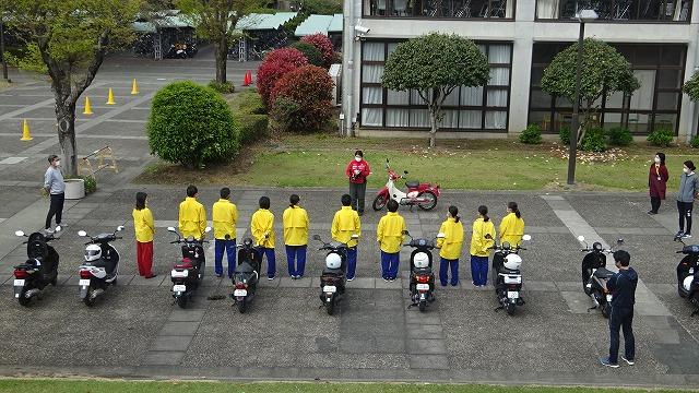 4月2日(金)9時から本校において、令和3年度新規原付通学生10名を対象とした実技講習会を実施しました。原付の基本的な取扱いと、基本的運転技術の練習を行い、交通安全意識の高揚を図りました。