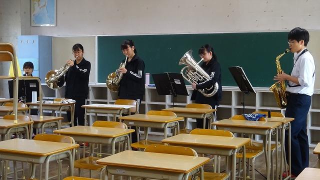 4月15日(木)昼休み、吹奏楽部が演奏を披露しました。