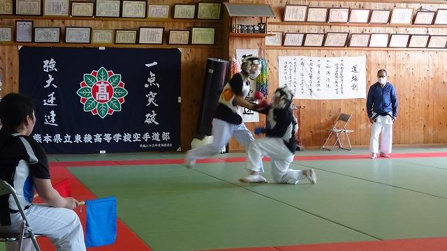 4月15日(木)昼休み、空手道部が男子団体形を披露しました。