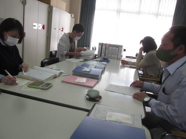 德永校長(熊本商業)、垂水教頭(湧心館)、中村主任事務長(熊本工業)、白川事務長(南稜)の先生方が、各部門の担当の先生方と会計監査を行いました。