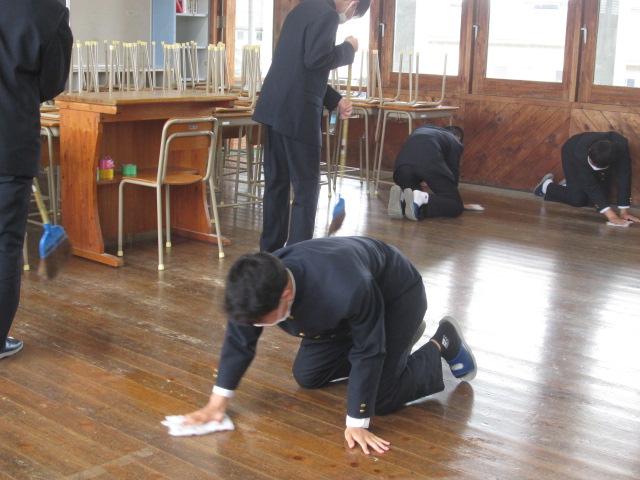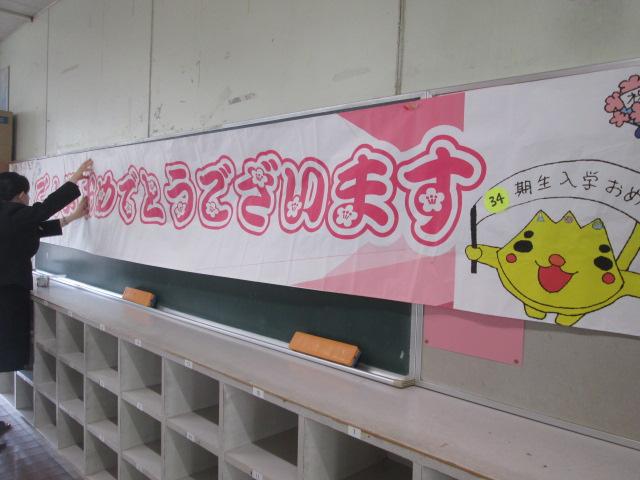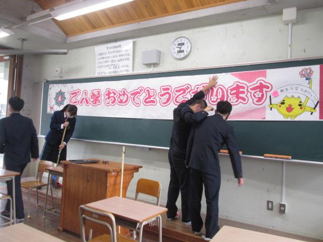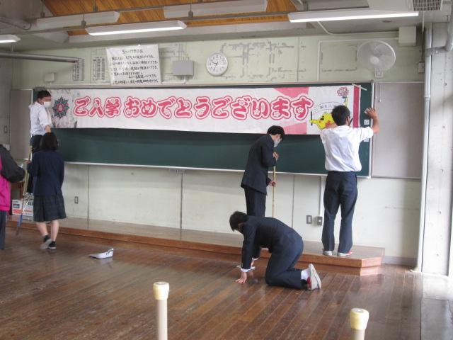 4月8日(木)新任式、始業式、入学式の式場設営、掃除を行いました。