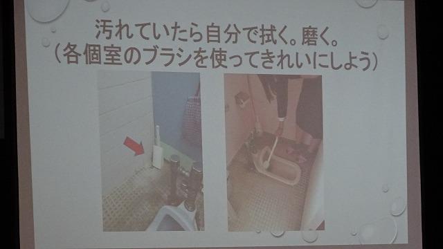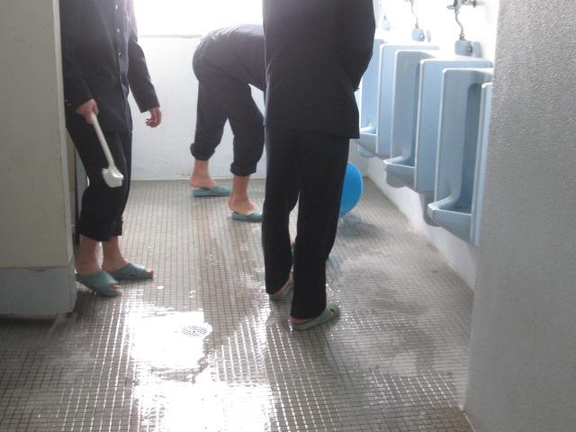 最後にはトイレ掃除のしかたについても指導があり生徒たちはメモをとりながら話を聞いていました。