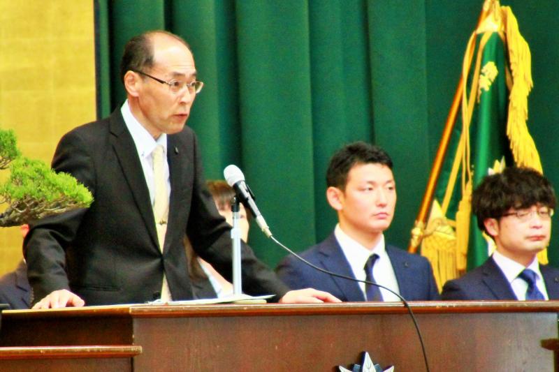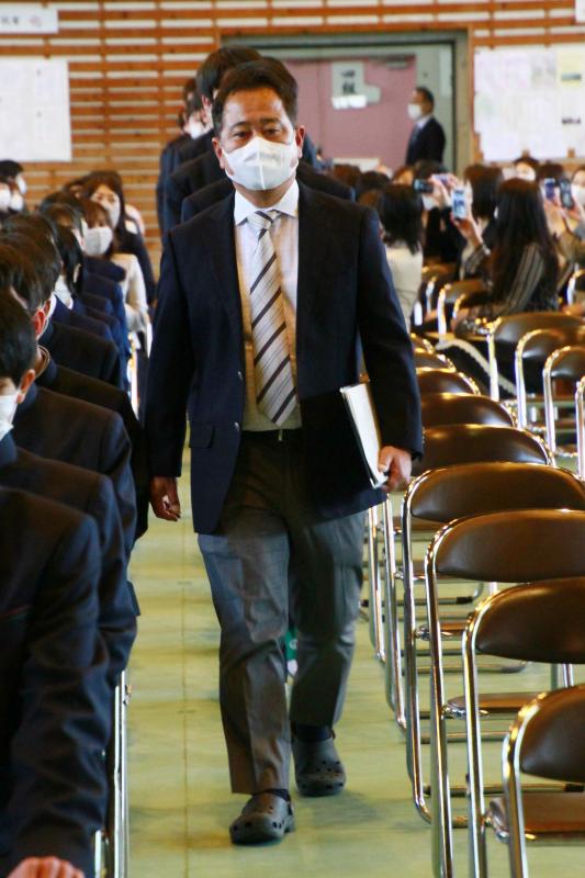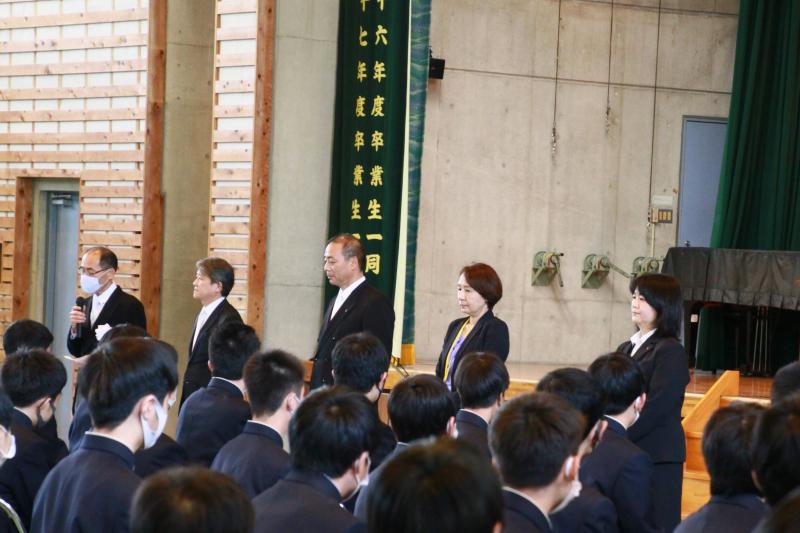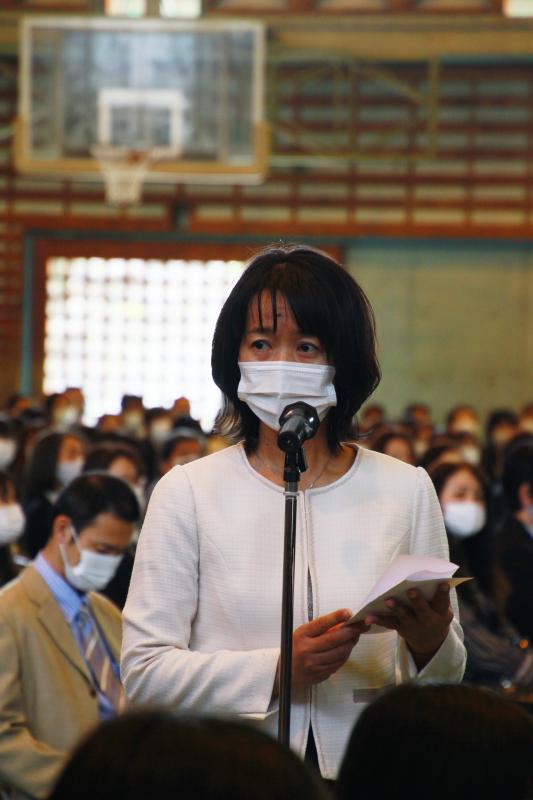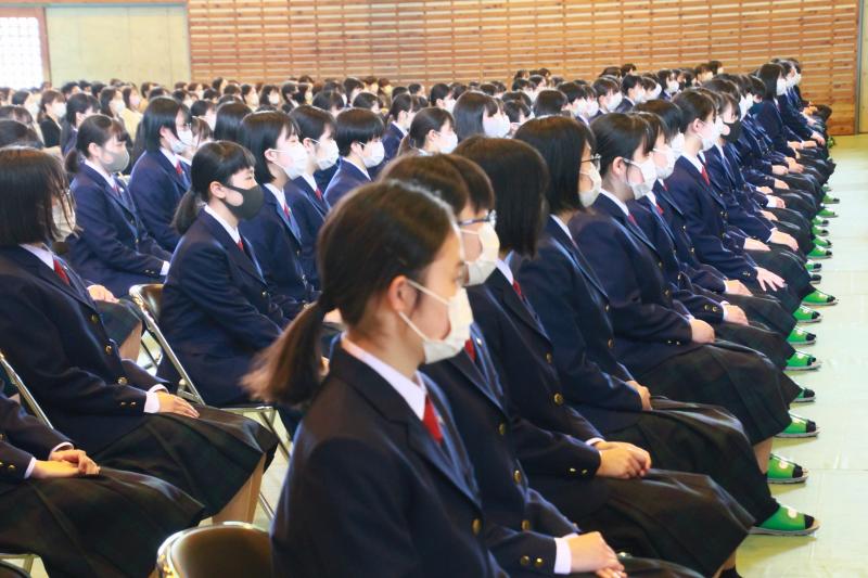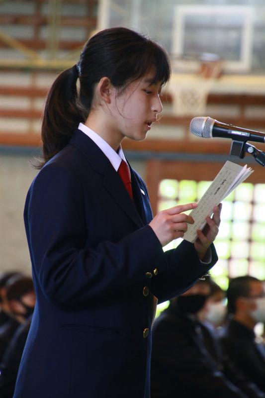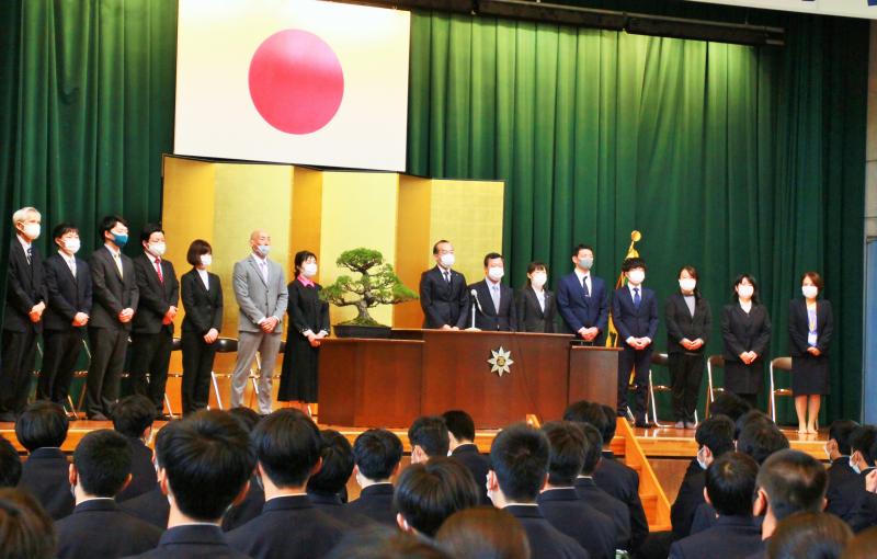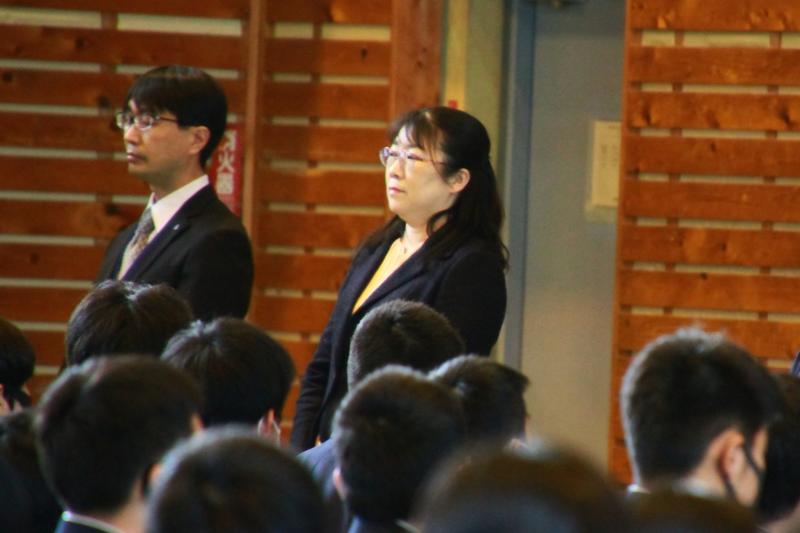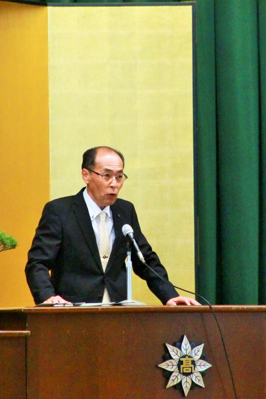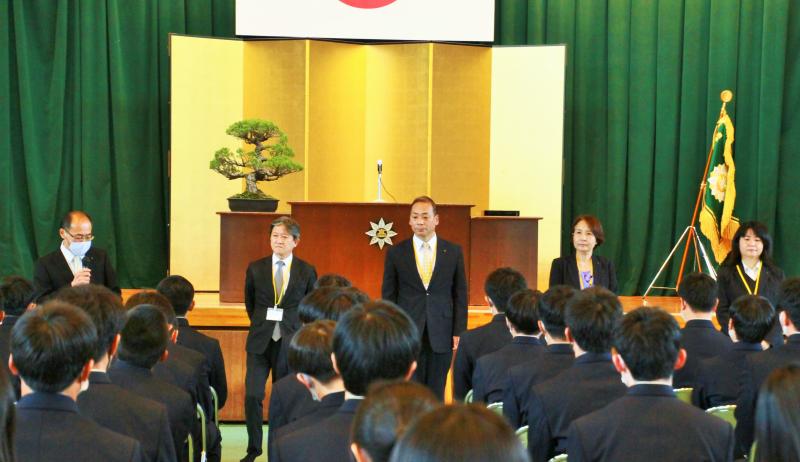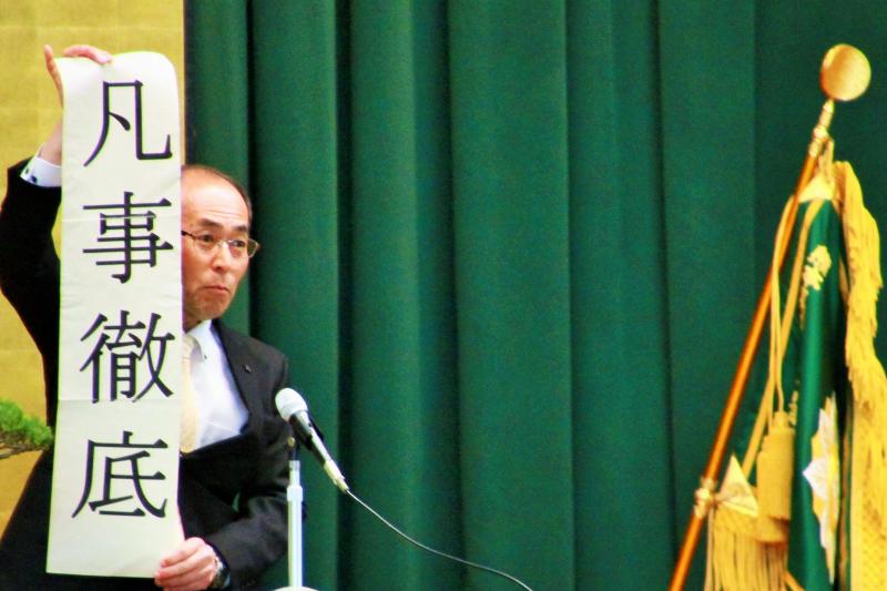 「感謝無くして成長なし」3年生には、後の人生に大きく影響する1年となる。大いなる努力を期待したい。また多くの先生方に、見える部分、直接見えない部分をお世話になる1年でもある。挨拶をはじめとした5つの行動目標の徹底を望む。