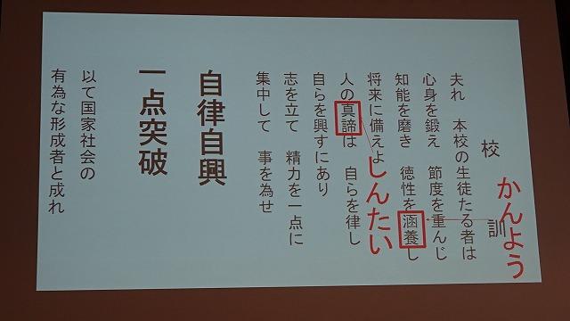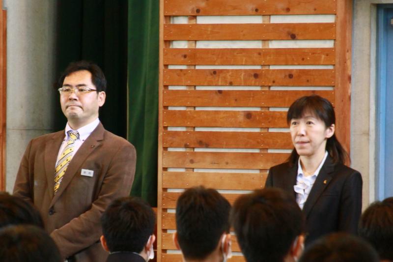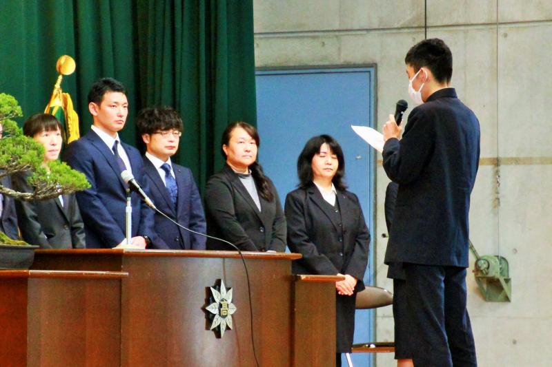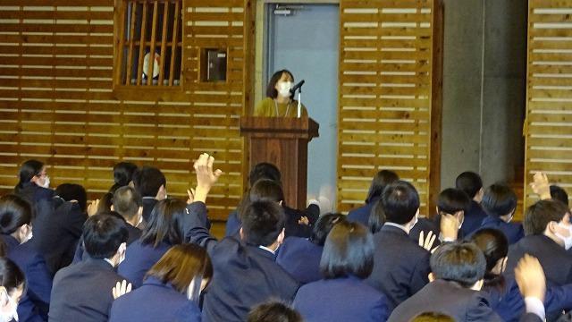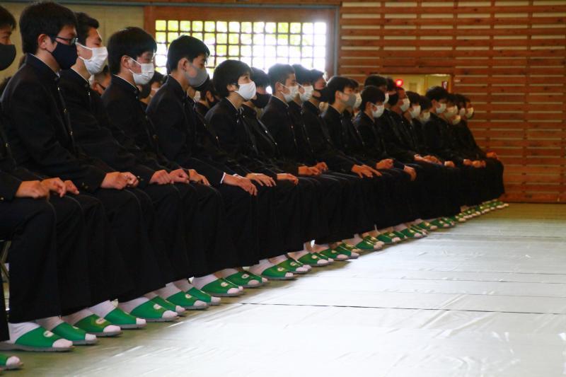 清々しい挨拶を受けて、素晴らしい学校だと思いました。学校のスローガン「自律自興」「一点突破」を胸に転入者全員、東稜高校の発展のために頑張ります。