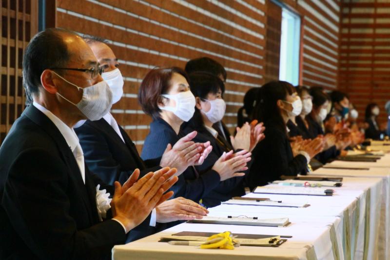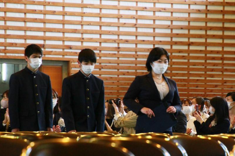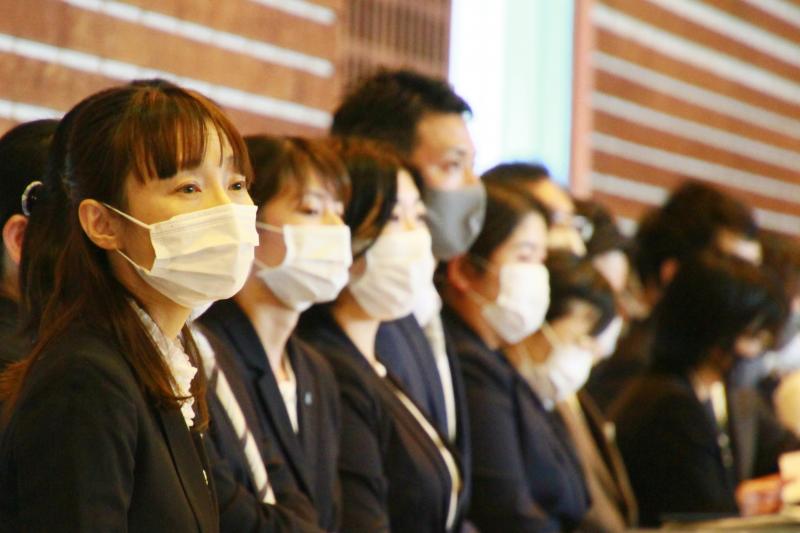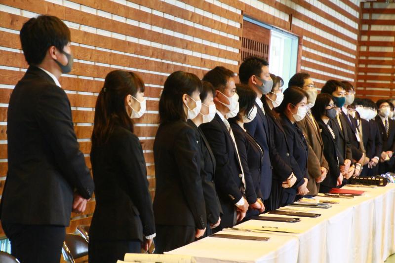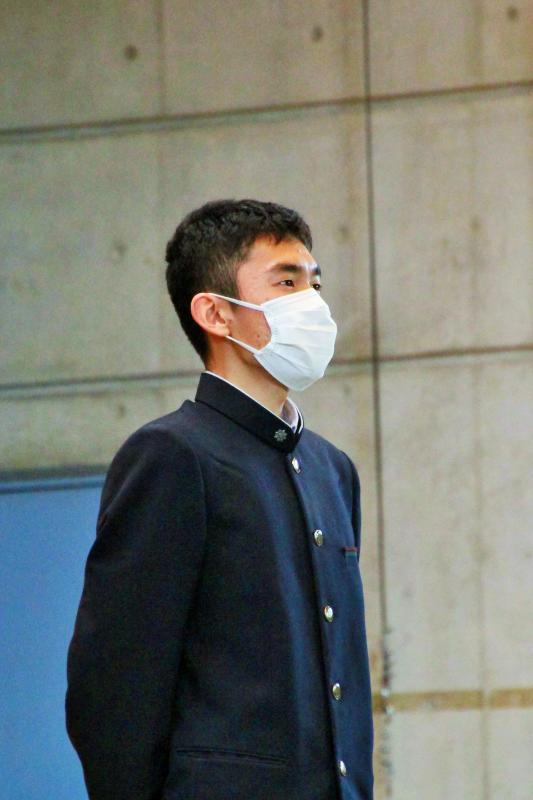 国歌斉唱(今回は新型コロナウイルス感染防止のため歌唱を全員で聴く)
