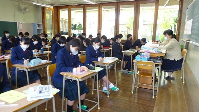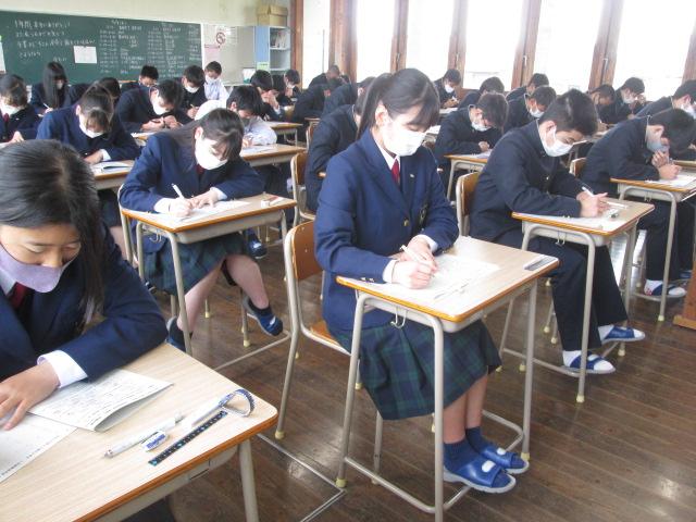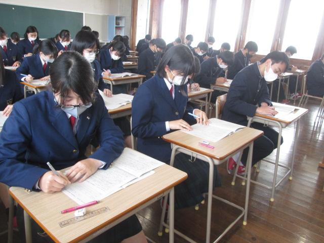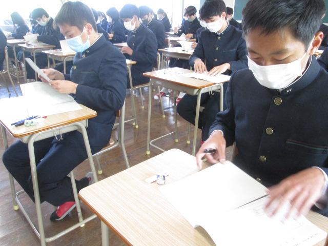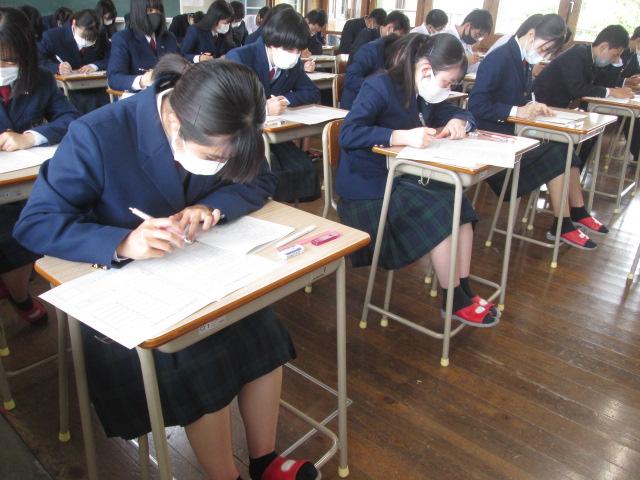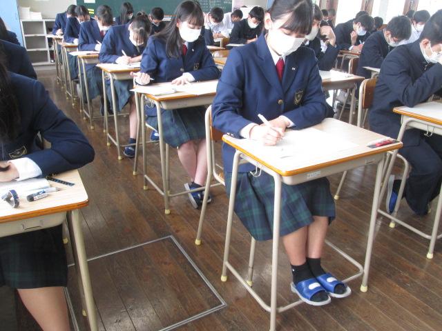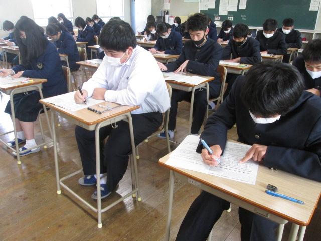 4月9日(金)2年生、3年生は整理考査を実施しています。春休み中の学習の成果を発揮してください。