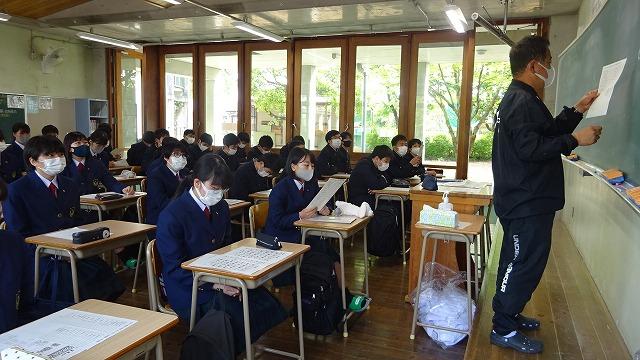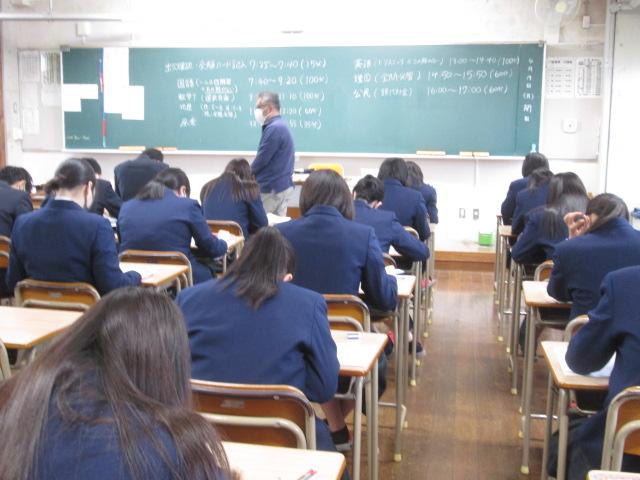 4月12日(月)2年生(理数コースのみ)、3年生は整理考査を実施しています。春休み中の学習の成果を発揮してください。