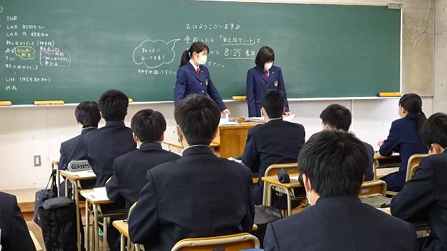 今年度は、マナーの向上とスマホとの付き合い方を中心に指導を進めていく。特にマナーについては、自分でTPOに応じて判断し、最適な態度・行動がとれるようになって欲しい。自ら正しいマナーを身につけ、その言動で他人から信頼される人となって欲しい。最後に交通事故には十分気をつけること。君たちには被害者にも加害者にもなって欲しくない。