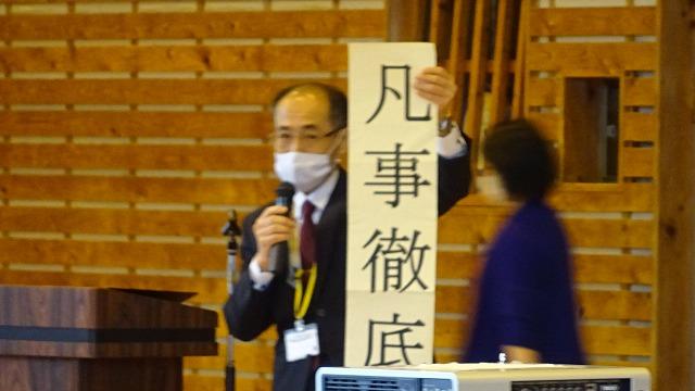 紫藤校長よりまず東稜の「稜」の漢字の意味、校章、校訓の説明がありました。また紙を見せながら「凡事徹底」「一回一動作」「三点固定」の三つの言葉についてのお話しがあり、生徒たちはしっかりメモを取っていた様子でした。本校の5つの行動目標の中の1つ目にある挨拶について、始業時の「おねがいします(7文字)」と終業時の「ありがとうございました(11文字)」のセブンイレブンでいきましょうというお話もあり、生徒の印象に残っていたようでした。