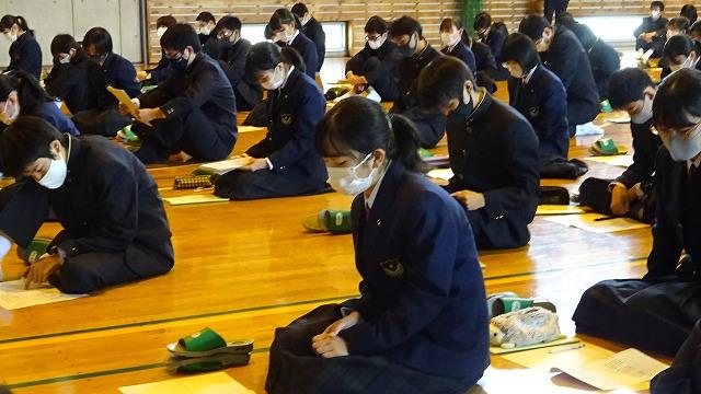 3年生も昨年後半から伸び始めてきている。今後も努力を怠らないでほしい。3月1日の卒業式の日に東稜高校で頑張って「よかった」と言えるようにしてほしい。この場合の「よかった」はただ単に楽しかったということだけでなく、努力して伸びた達成感を味わって欲しいと言うことである。途中、悩みや苦悩など紆余曲折があると思うが、進路実現への歩みを止めることなく努力し、これ以上ないと思えるぐらいの努力を期待したい。光陰矢のごとし。3年生の1年間はあっという間である。
