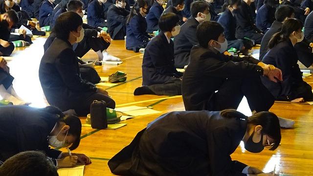 本日1時間目に、体育館において、3年生の学年集会が行われました。