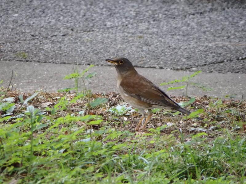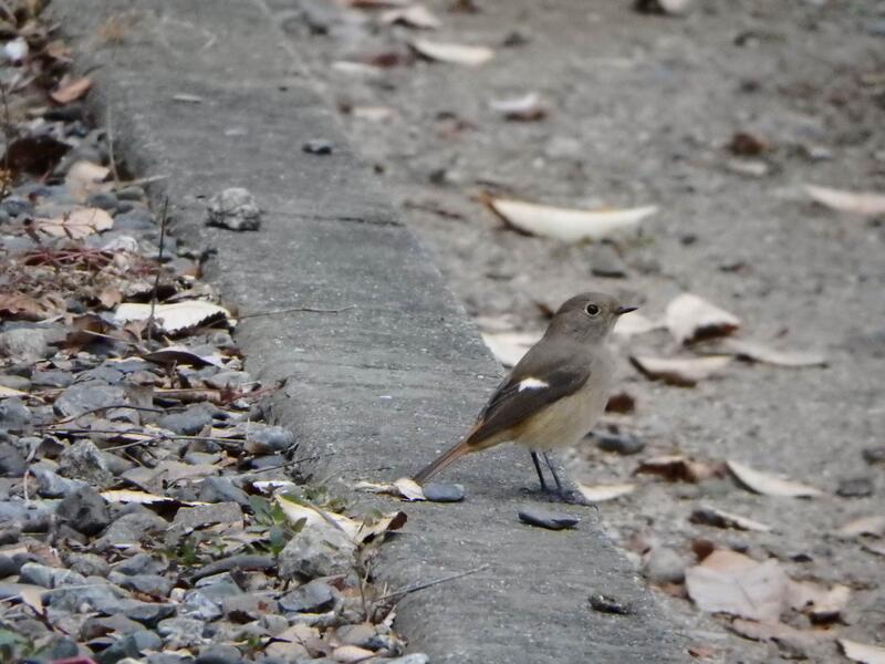冬鳥のシロハラがいました。落ち葉の下の土壌動物や木の実を食べます。落ち葉をガサッガサッといわせながら探しているので、その音で気づくこともあります。名前のシロハラは白い腹ですが、褐色をおびた灰色です。