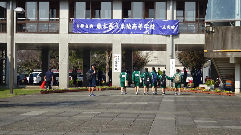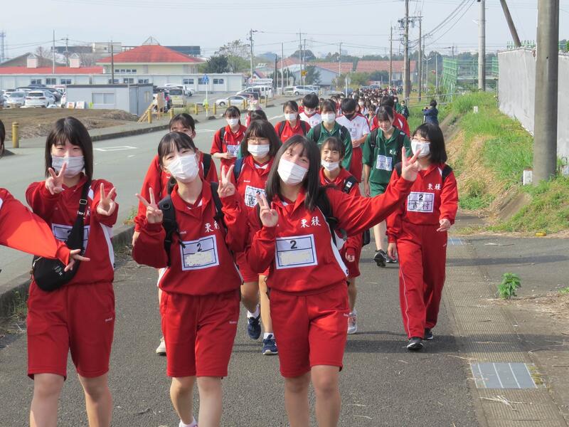 東稜高校~益城町~東稜高校の13.3kmを歩きました。天候に恵まれた強歩会となりました。先頭は11:05に到着し、12:33無事最終班がゴールしました。育友会の方々をはじめ沢山の方々にお世話になりました。