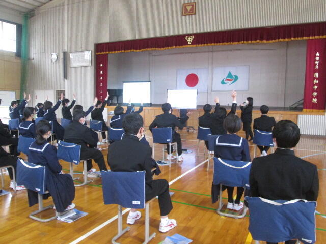 11月5日(金)山都町立清和中学校の体育館で、東稜高校の説明会を行いました。