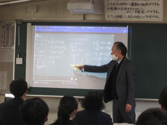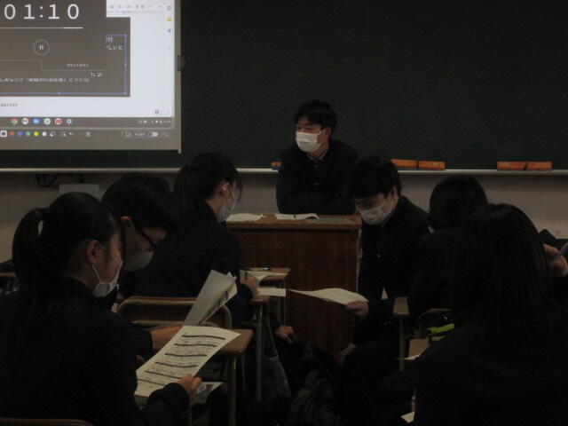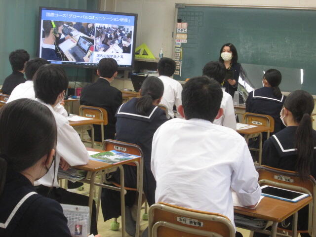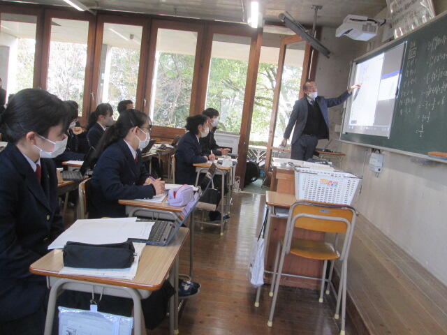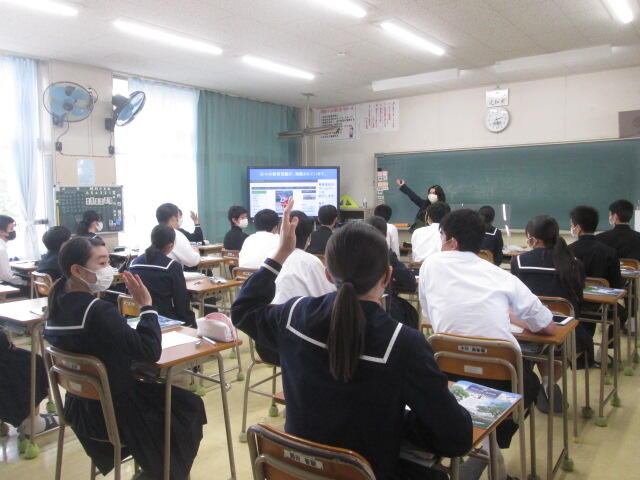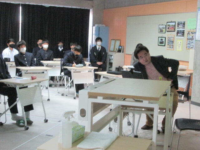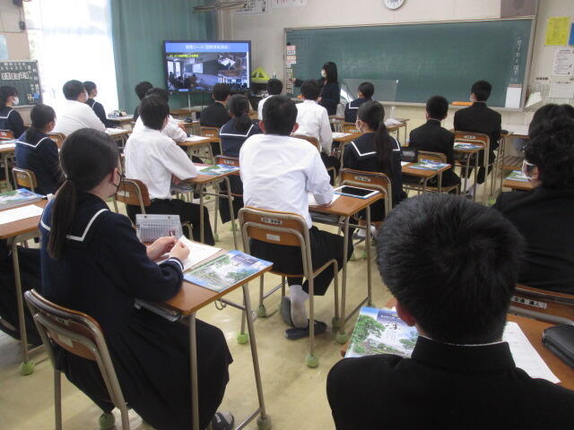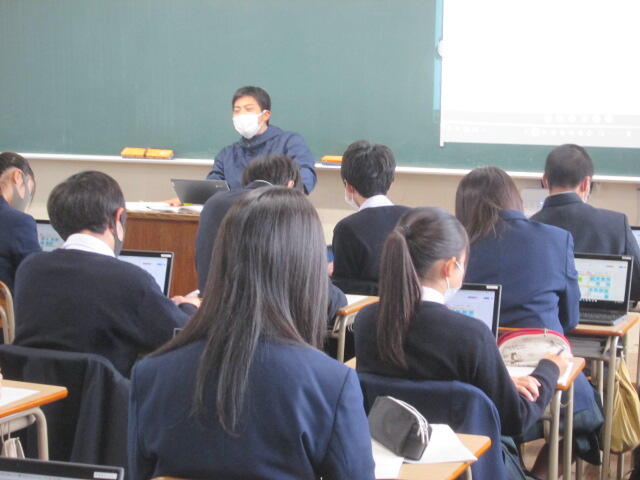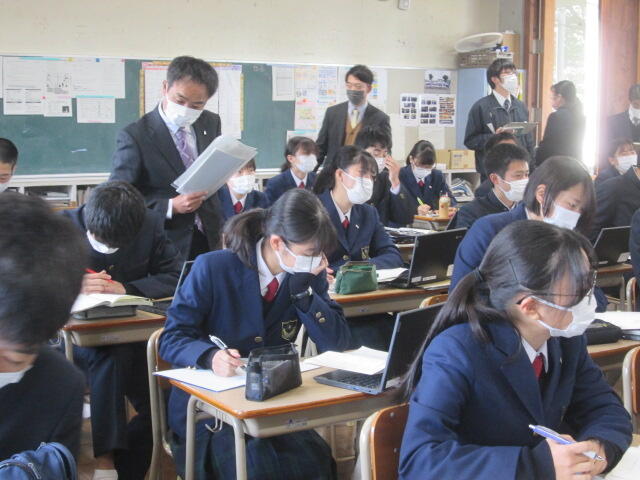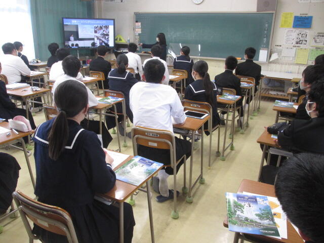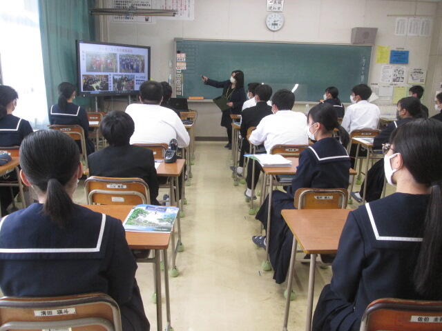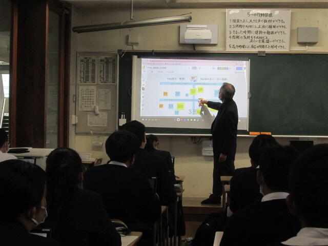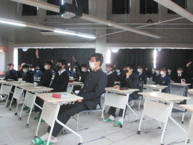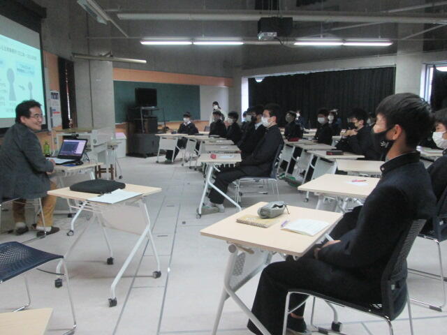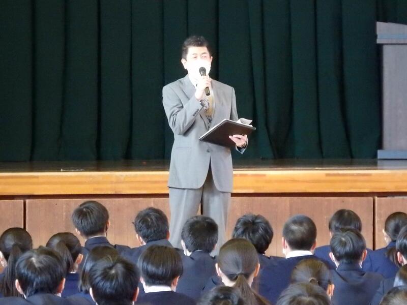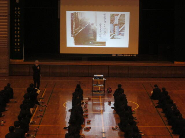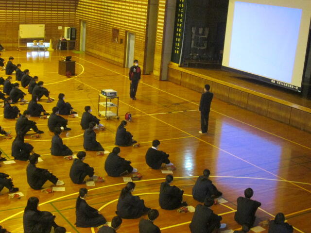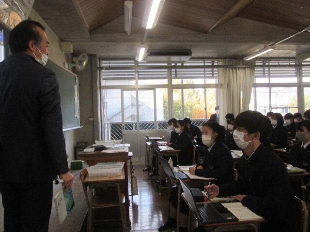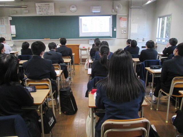 3年生の皆さんの元気のよいあいさつから始まり、真剣に話を聞いてくれました。素晴らしい態度でした。東稜高校には、武蔵中学校の卒業生が3人学んでいます。東稜高校が武蔵中学校の皆さんの選択肢の一つになれば幸いです。