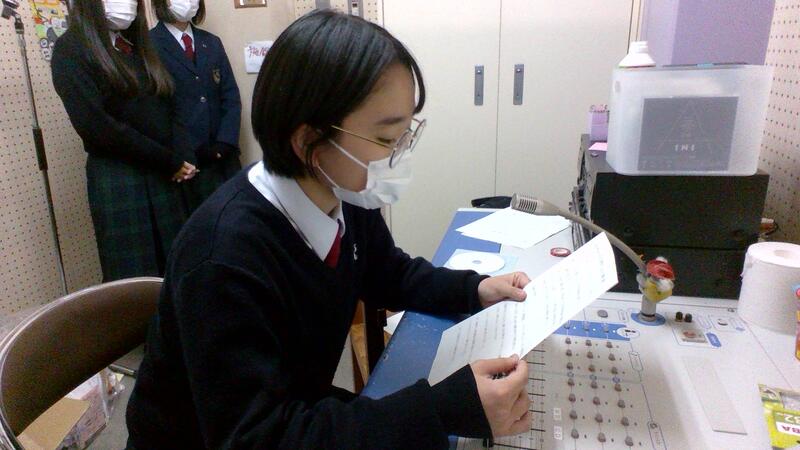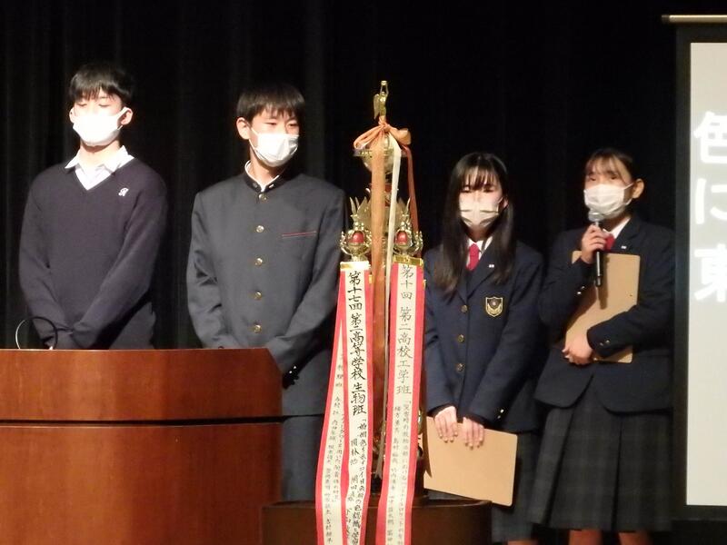 奥田さん(2年1組)、橋柿さん(2年国際) 、川﨑さん(1年4組)、 杉本さん(1年1組)