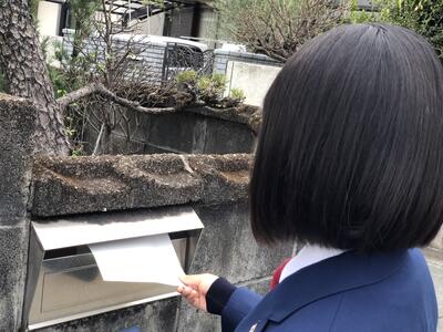 今週は避難訓練を行う予定です。その際、緊急地震速報の放送を校内で流します。近くにお住まいの方々が心配されないように、1年生と2年生の防災委員でお知らせのプリントを配りました