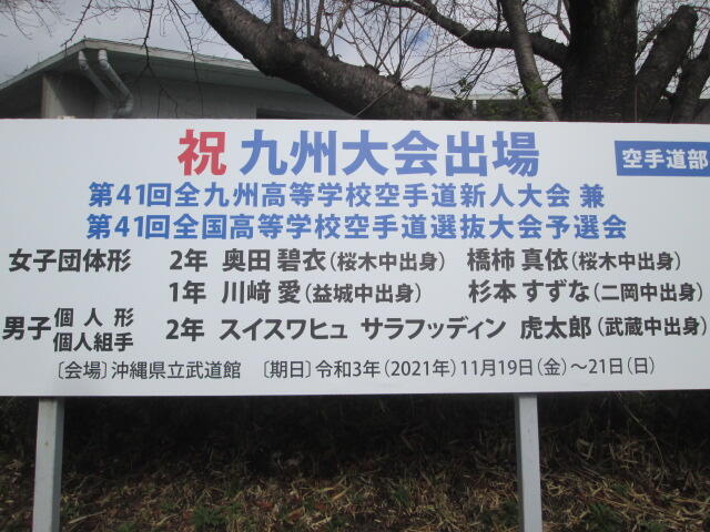 11月19日(金)~21日(日)の3日間、那覇市の沖縄県立武道館で行われる大会に出場します。第41回全九州高等学校空手道新人大会 兼 第41回全国高等学校空手道選抜大会予選会です。大会での健闘を応援しています。