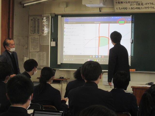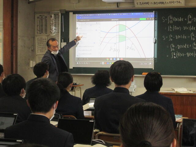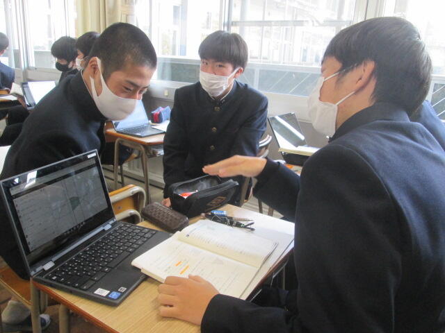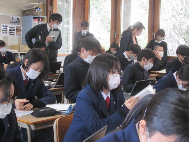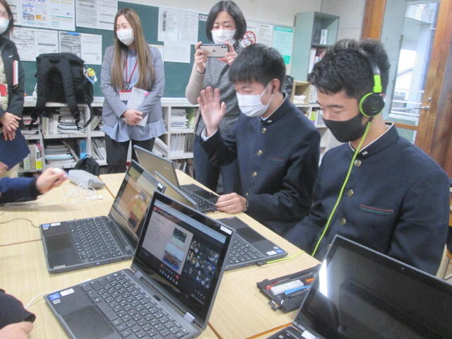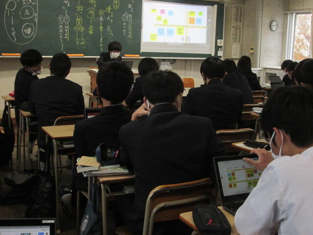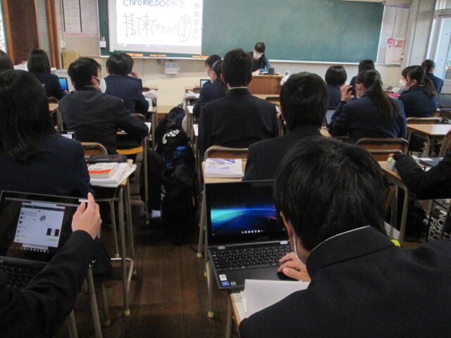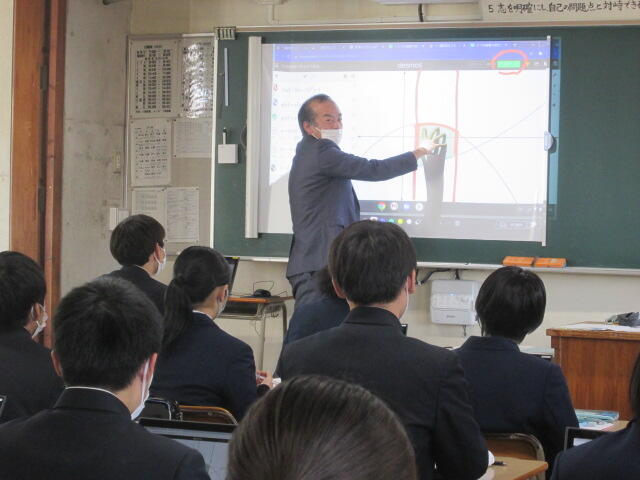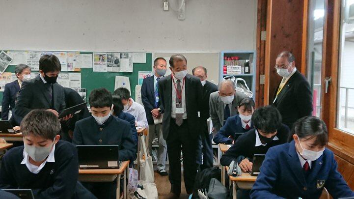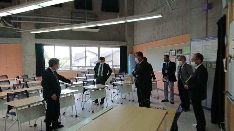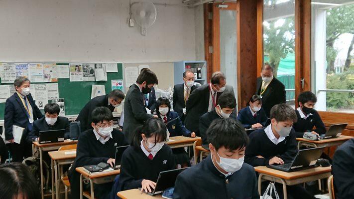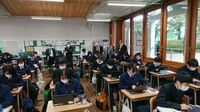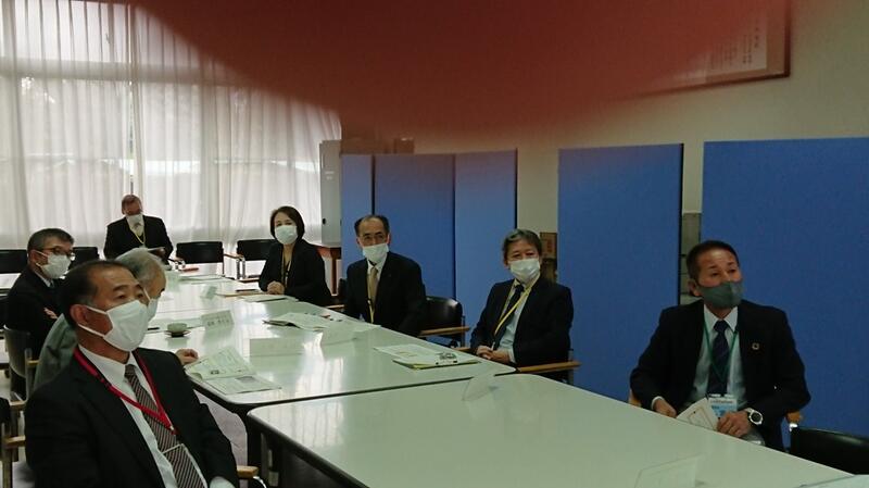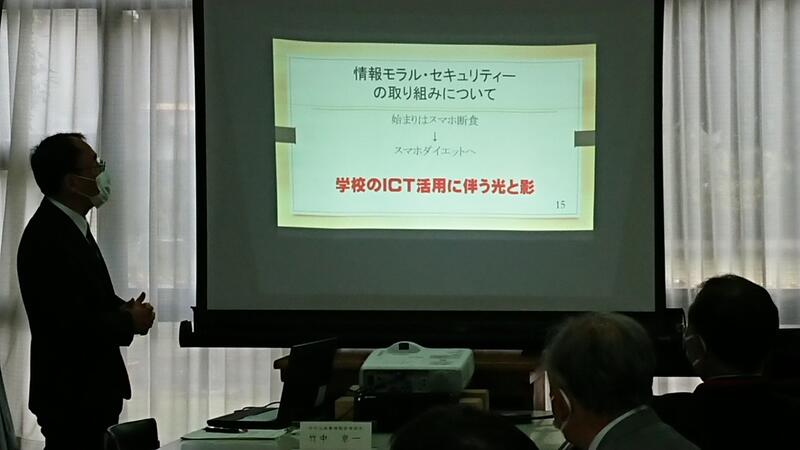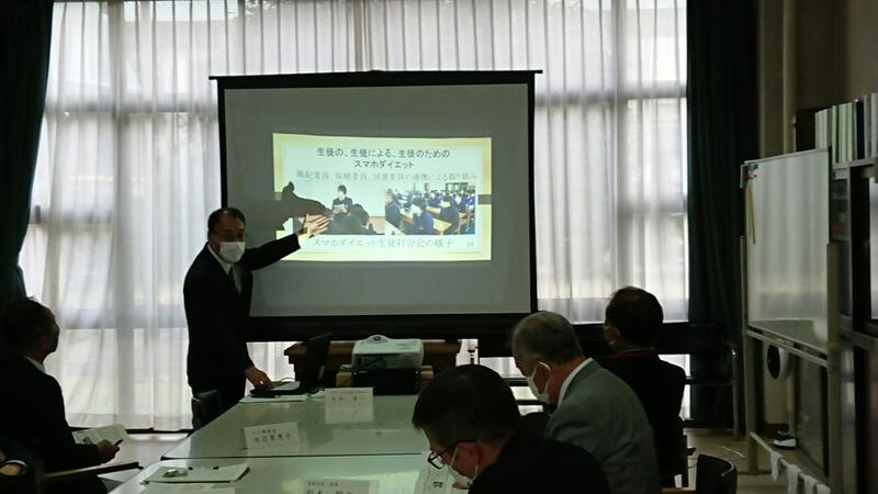 協議内容は主に「スクールミッション、スクールポリシー」と学校の魅力化について、また、GIGAスクール構想に伴うICT教育の現状と今後の方向性について、竹中研究企画部県情報管理部長がスライドを用いて説明し、分散登校途中から整備を進め全校でICT教育に邁進する本校の現状に様々なご質問やご意見をいただきました。また、施設見学、授業見学もしていただきました。第3回は3学期に予定されています。