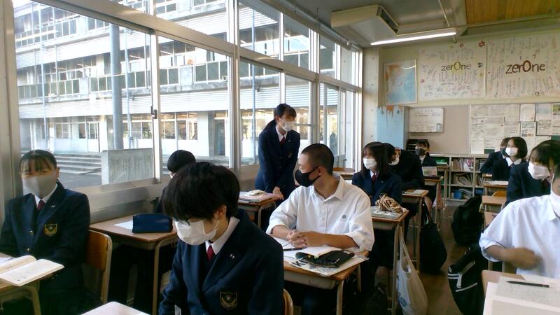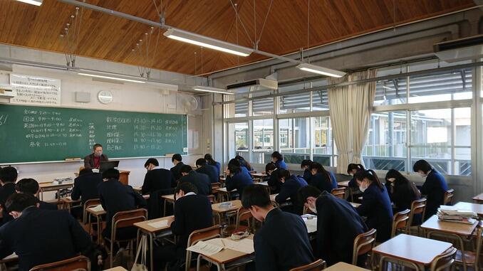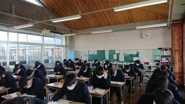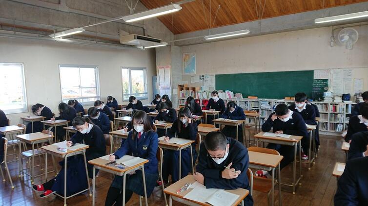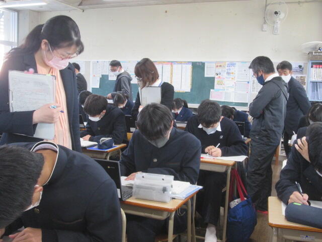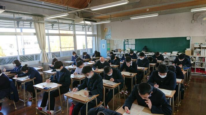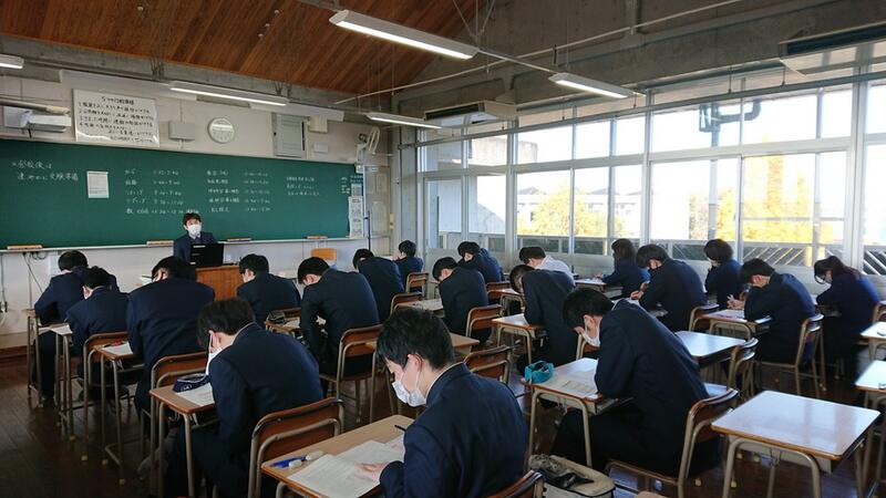 ここの数日、急速に寒さが増し、雨も降る日々でしたが、今朝は雨も上がり陽光が差しました。どのクラスの生徒も真剣な面持ちで挑んでいました。また、換気を徹底している様子から、文字通り「受験は団体戦」を意識しているクラスも見受けられました。