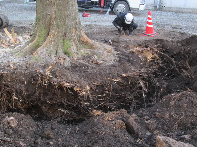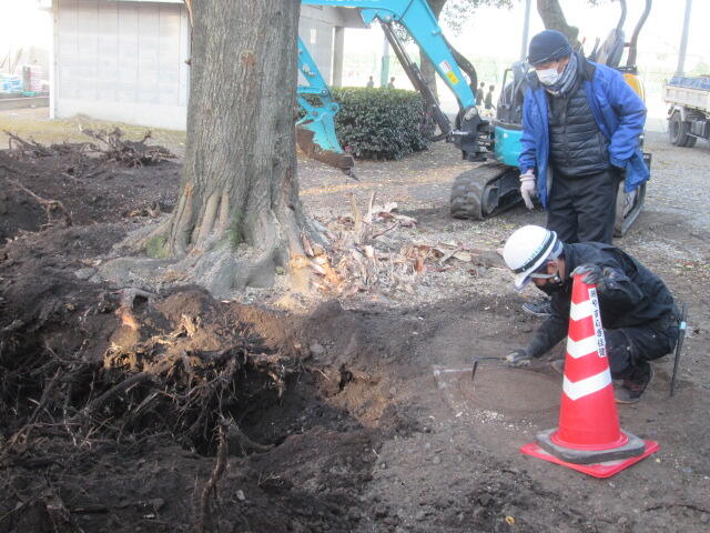 11月27日(土)体育館と理科棟の間の木の抜根作業が行われています。