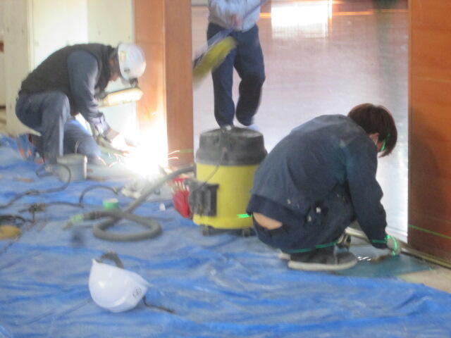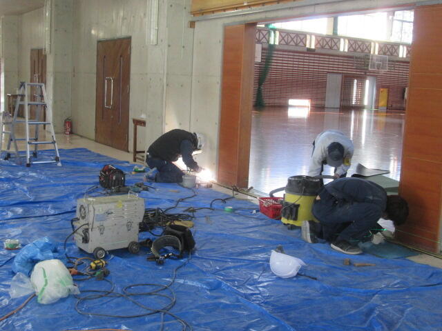 11月29日(月)体育館の入口の引き戸の修繕工事が行われています。