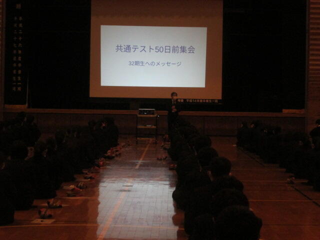 12月1日(水)4限目、3年生を対象に共通テスト50日前激励会を行いました。