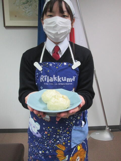 12月3日(金)家庭基礎の調理実習で1年国際コースの生徒たちが肉まんを作りました。試食にと2個校長室にいただきました。宮崎さんの班が作りました。