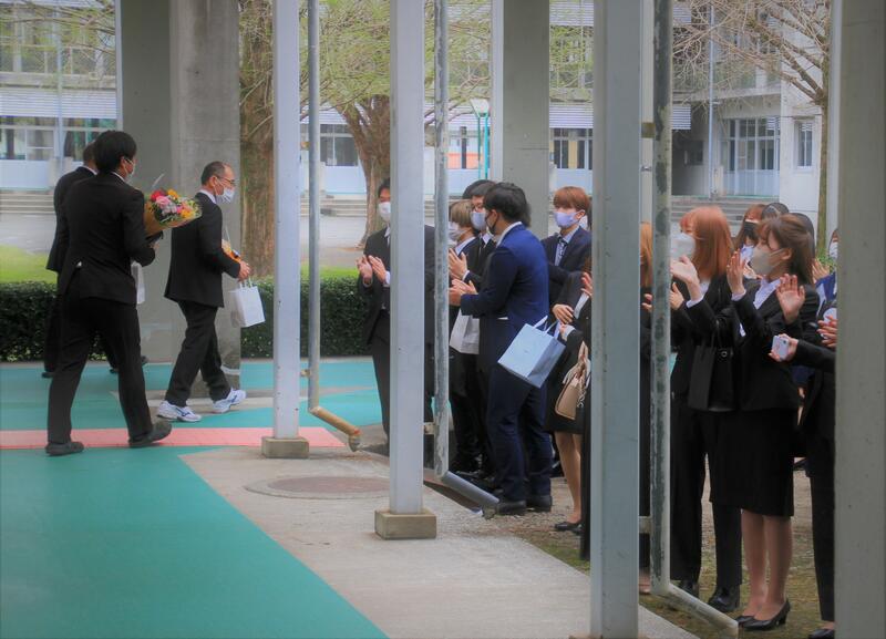 2年間お世話になりました。自分も勉強なりました。いつも前向きに授業を受けてくれた皆さんに感謝しています。これから皆さんに授業ができなくなるのをさみしく思っていますが、皆さんが学校で学んだことで未来を切り開いていくのと同様に私も数学の研究を通して未来を切り開いていきたいと思います。ありがとうございました。