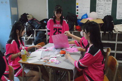 午後は準備の時間でした。明日のバザーに向けて教室のセッティングと飾り付けを進めました。