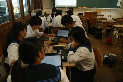 クラスを6つの班に分けて発表会を行い、相互評価によってそれぞれの班代表を決定しました。