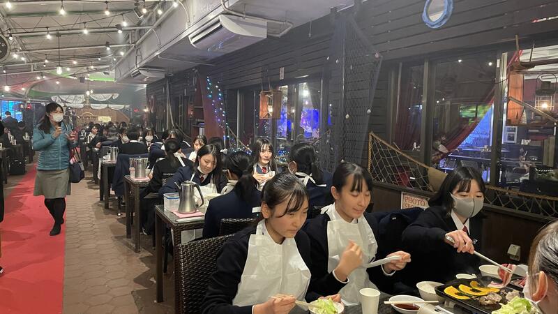 2組、6組、7組、理数の生徒は熱海商店街で昼食と買い物を楽しんでいます。