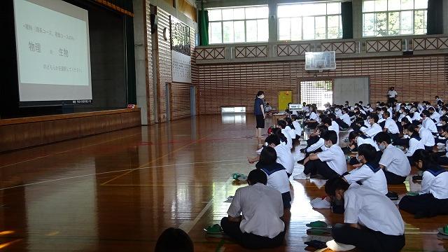 6/24(木)7限LHRでは、1年生は体育館に集まり、文理・科目選択説明会を実施しました。