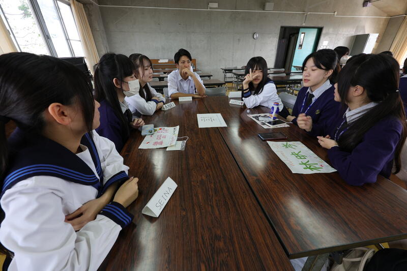 全体会に先立って、国際コースの生徒たちとの交流を行いました。