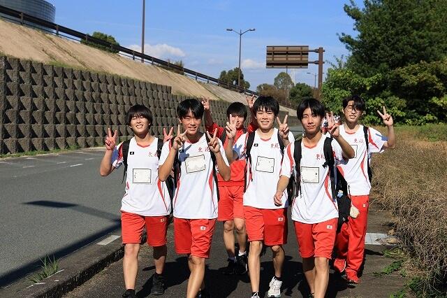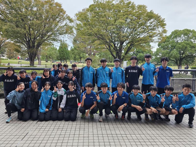 10月26日(土)えがお健康スタジアムスタート・フィニッシュ高体連駅伝付設コース(男子7区間42.195km・女子5区間21.0975km)にて開催されました。参加校は女子は18校17チーム、男子は29校28チームです。女子のスタート前は雨が降っており、このまま降り続くかと思っていた雨は上がり、逆に男子のスタート前には日が差し、気温が上がっていました。短距離・長距離ともに協力し、東稜高校陸上競技部として襷を繋ぐことができました。高校総体後、2人の3年生が駅伝のために残ってくれ、一緒に走ることができました。沿道では多くの保護者の皆様に応援いただきました。本当にありがとうございました。