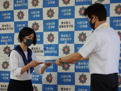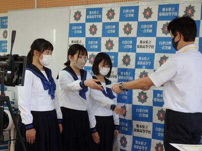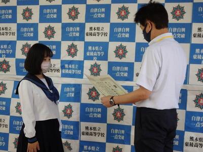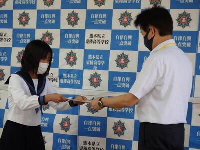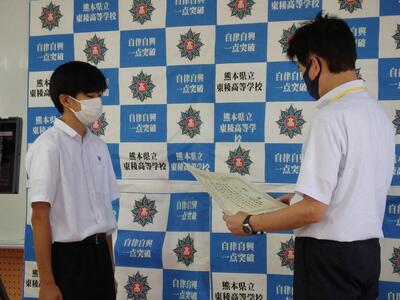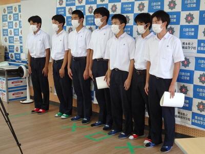 また、推戴式では令和4年度国民体育大会第42回九州ブロック大会に出場する山川さん(2-2)が紹介され、学校長から激励の言葉、本人の挨拶が行われました。