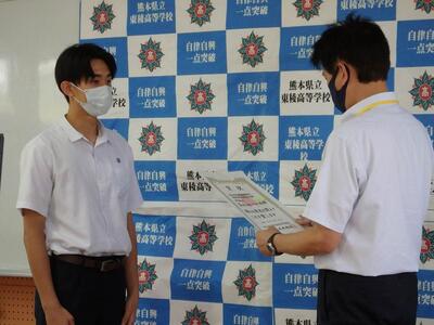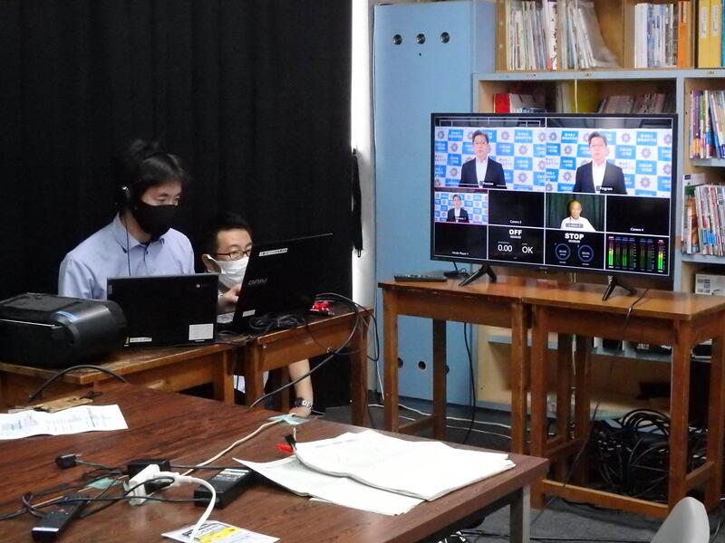 5月20日(金)、中間考査が終わった午後、KKTテレビタミンから本校図書委員会アーカイブス班が取材を受けました。