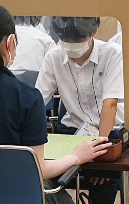 多くの先生方が見守る中、生徒たちは落ち着いて授業を受ける様子が見られました。
