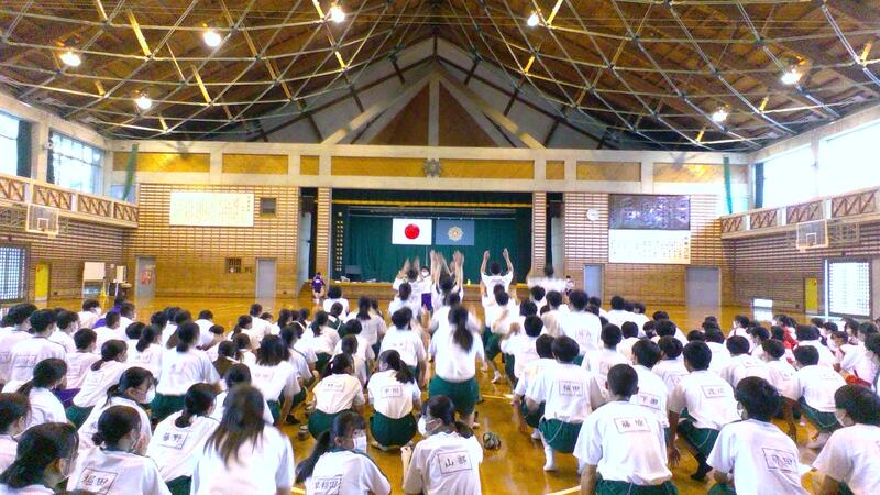 7限目は赤・白・青の各団に分かれ、応援練習を行いました。