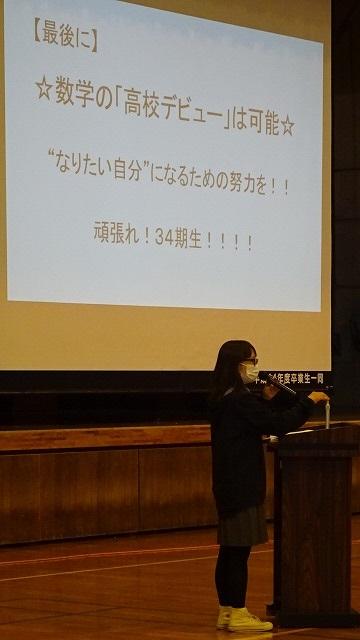 今年度の3年生の最大の目標は、進路実現である。進路実現に向けて、粘り強く、愚直に努力をやり切る1年生であってほしい。