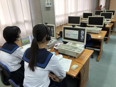 高英研ディベート講習会に2年生4名が参加しました。ディベートの基礎知識を学び、実際に2021年度の論題をもとに、立論を作り、最後には実際に肯定側と否定側に分かれてディベートをしました。参加者全員初めての経験でしたが、頭をフルに使い英語で議論を交わしました。ZOOM上ですが、ディベートを学ぶ県内の高校生の姿も見ることができ、良い刺激になりました