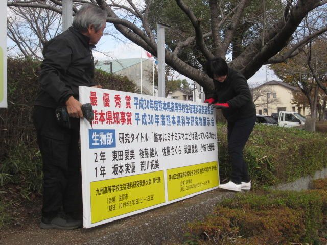 2019年11月19日(火)生物部【最優秀賞】全国大会出場の看板を設置しました。